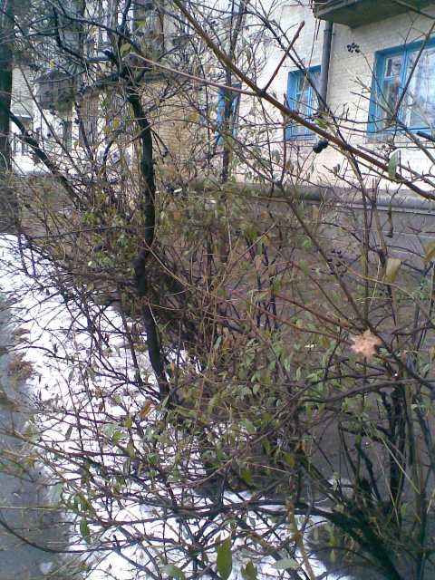 Второе фото: Киев. 26 декабря. Снег и зелень. Кусты спокойно сохраняют и плоды и зеленые листья.