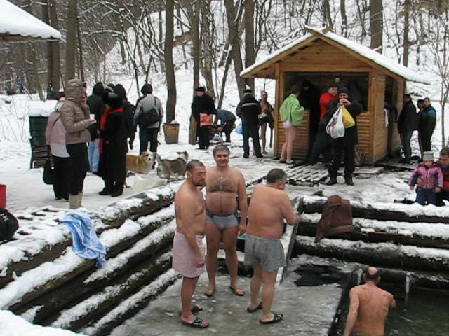 На Крещение 19 января мы небольшой группой в составе 7 человек побывали в Киевском Голосеевском лесу, сделали часовую прогулку по уникальным местам, расположенным на территории леса, затем занырнули в китаевскую Купель и завершили мероприятия беседами в монастырской столовой.