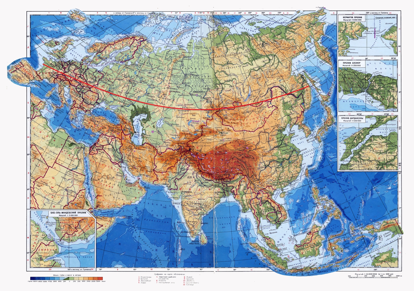 Сначала увидел Евразию. Северная её часть была под водой, то есть, там был океан. Был север Африки, выше тоненькая полосочка оставшаяся от Европы, и далее на восток шло горизонтальное побережье, примерно вот по этой линии: