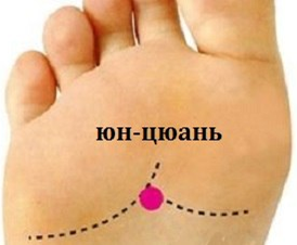 Обратите внимание и займитесь массажем-постукиванием по точке, называемой юн-цюань.