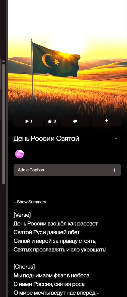 В качестве подарка предлагаю вам, друзья мои, комбинированную музыкальную композицию "Мы поднимаем флаг Святой Руси", тематически созданную мной с помощью нейросети и приуроченную к сегодняшнему Празднику. Это, так сказать, для хороших и позитивных чувств :) . Для тех, кто во время прослушивания хочет видеть перед глазами текст, он тоже опубликован, смотрите ниже.