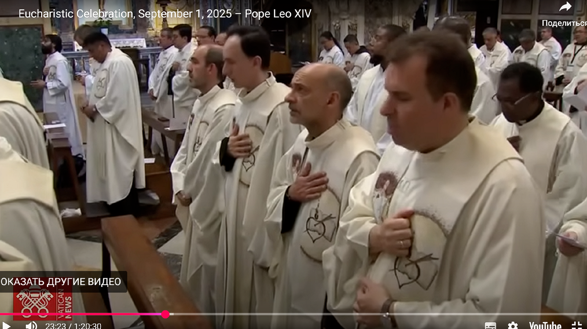 Кадр из видео встречи Папы Римского с Августинцами 1 сентября 2025 г.