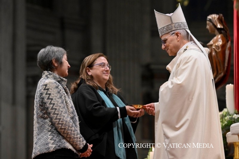 Дорогие посвященные мужчины и женщины, Церковь сегодня благодарит Господа и вас за ваше присутствие и призывает вас быть, куда бы ни послало вас Провидение, закваской мира и знаком надежды. Мы вверяем ваш труд заступничеству Пресвятой Девы Марии и всех ваших святых Основателей и Основательниц, когда мы вместе возобновляем у Алтаря приношение наших жизней Богу.