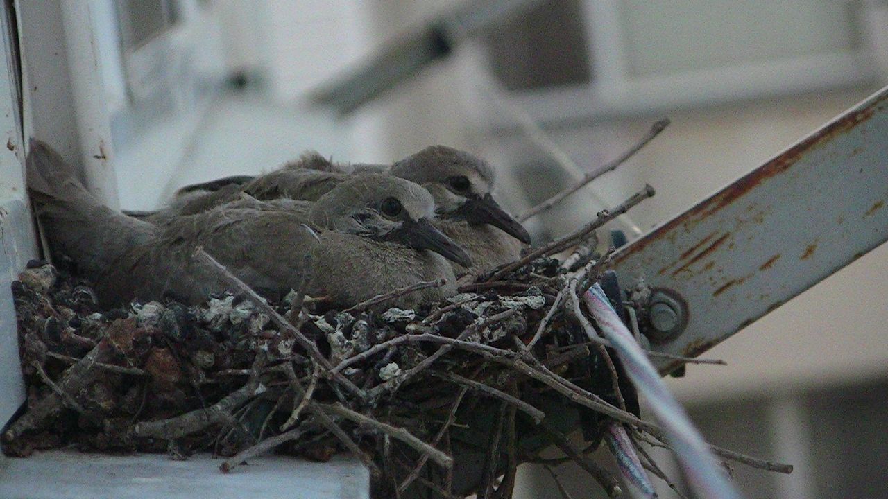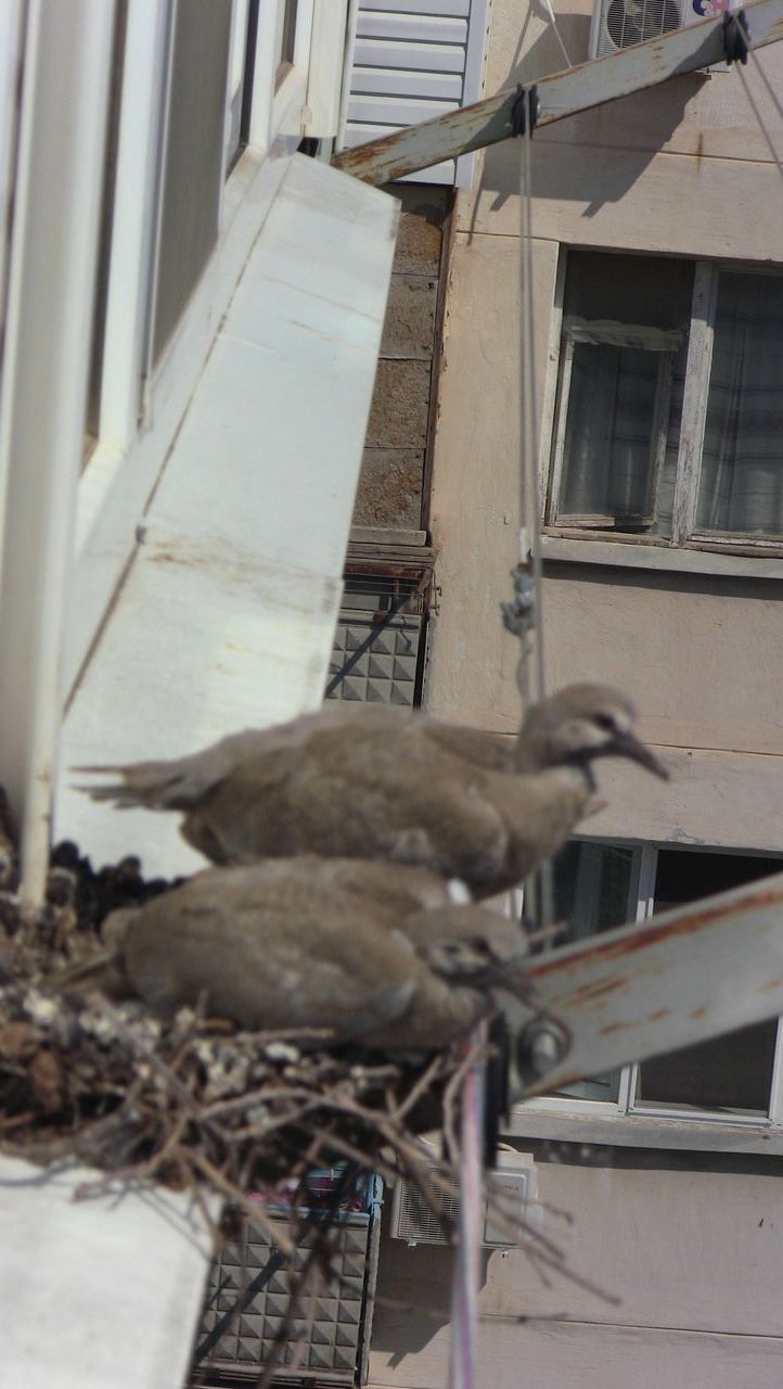 Этой весной и летом на балконе вывелись птенцы лесного голубя - горлицы. На фото видно некоторые моменты этого процесса.