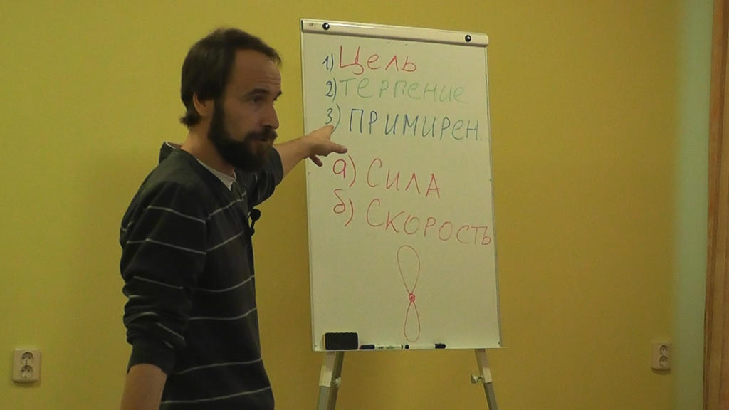 - для того, чтобы достичь цели, надо иметь терпение, - для того, чтобы было терпение, нужно примириться с условиями, в которых находишься, - в результате этого накапливается сила (а не растекается куда попало), - сила создает скорость, которая разгоняет пропеллер, - скорость несет к цели. - и так по кругу... 8)