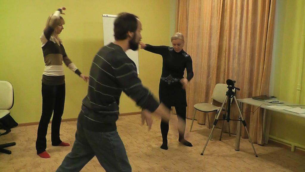 Саошиант, перехватив инициативу в свои руки, или в данном случае уместнее будет сказать, зубы вцепился в руку нападавшей... 8)