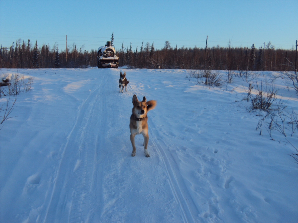 Это они его тянут к тому бульдозеру, который в лесу застрял.