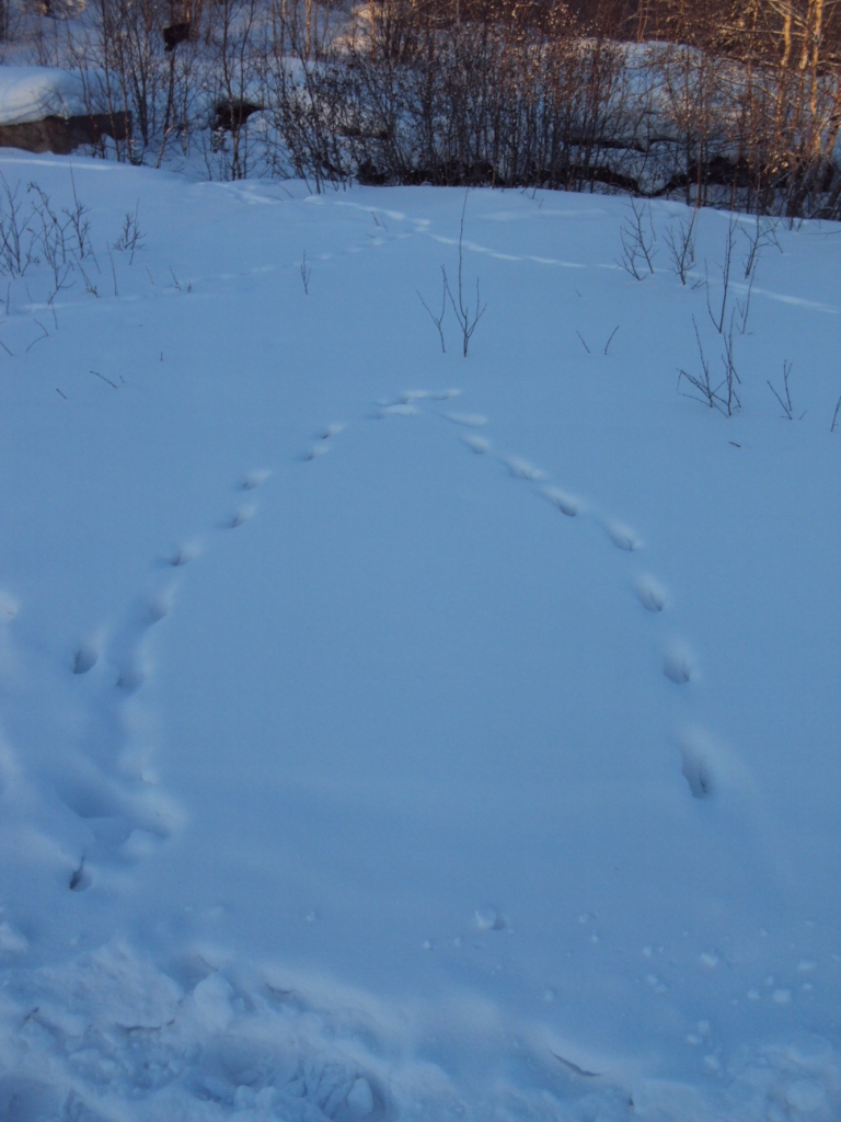 Или один заяц, пытаясь сбить с толку волка, решил изобразить широкую поступь все больше просыпающегося медведя-шатуна... )))