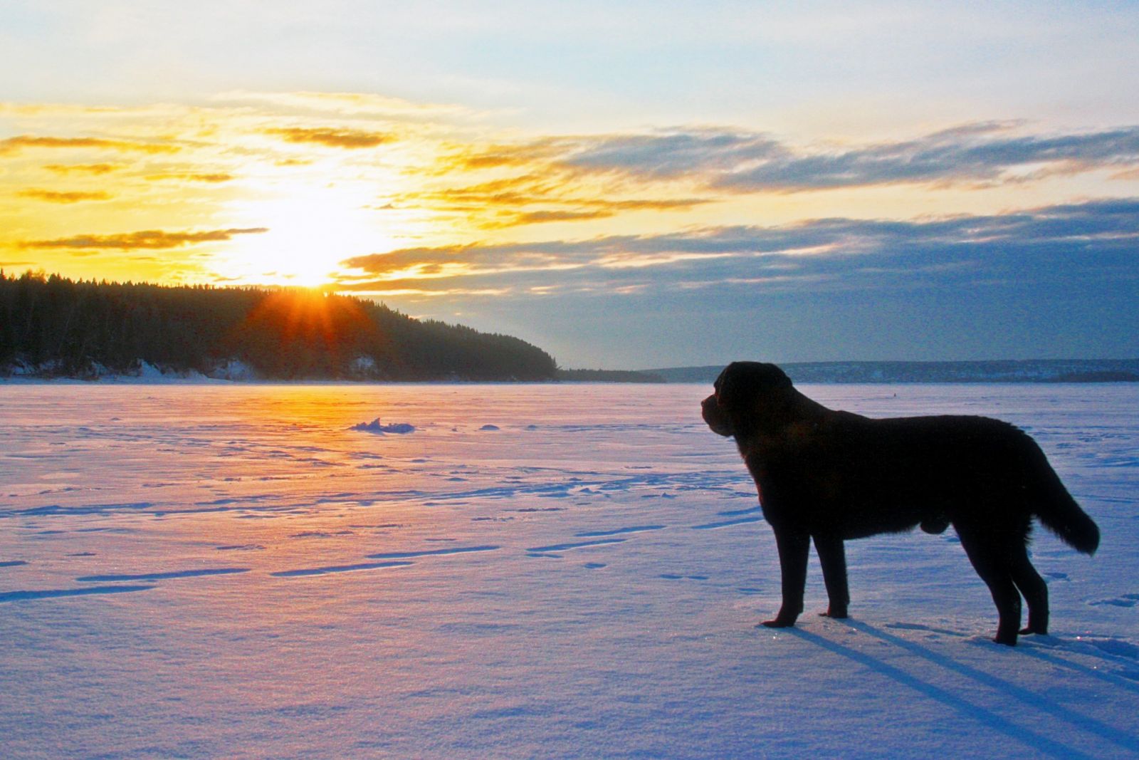 Картинка классная, собачка так это задумчиво смотрит на солнце над горизонтом!