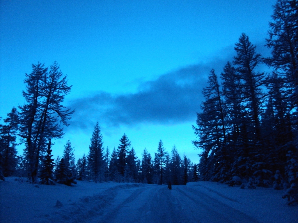 Сплошная синева везде: на небе, на снегу, на деревьях. Сразу видно, что мороз крепчает.