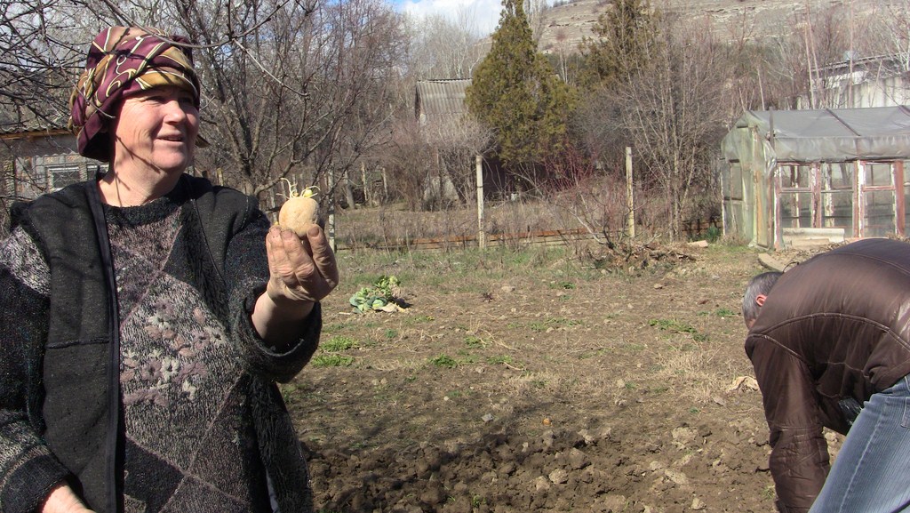 На корнях прошлогодней картошки уже выросла молодая