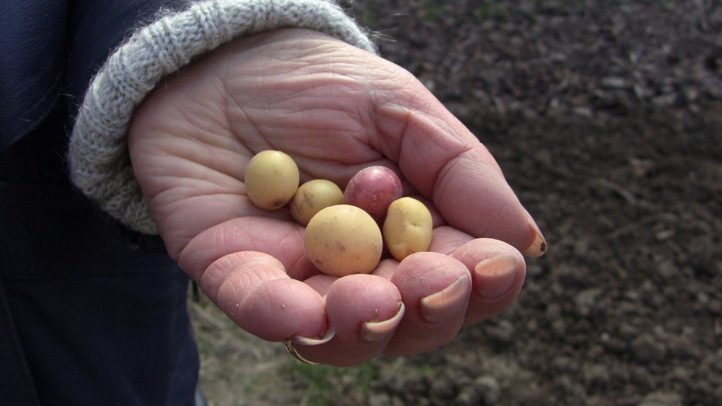 Молодая картошка, выросшая из прошлогодней прямо от корней