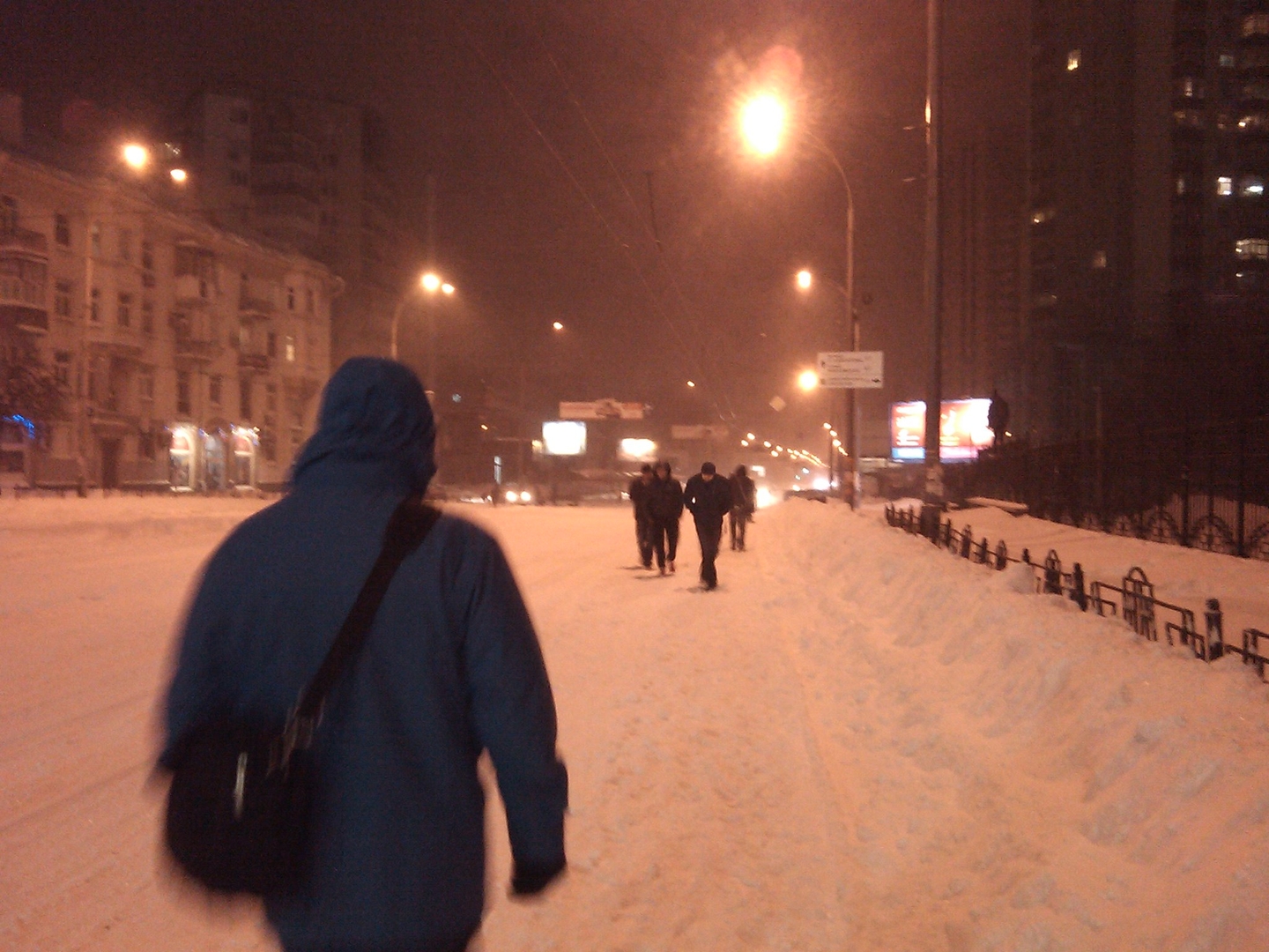 Если б чуть по меньше людей, убрать стенды (а также высокий дом на заднем плане), то вид практически не отличить от того, когда я зимой выходил с ДК и шёл на прогулку