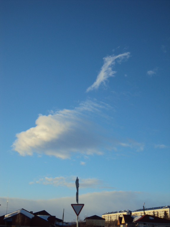 Оригинально! Знак "уступи дорогу" и в облаках тоже действует!