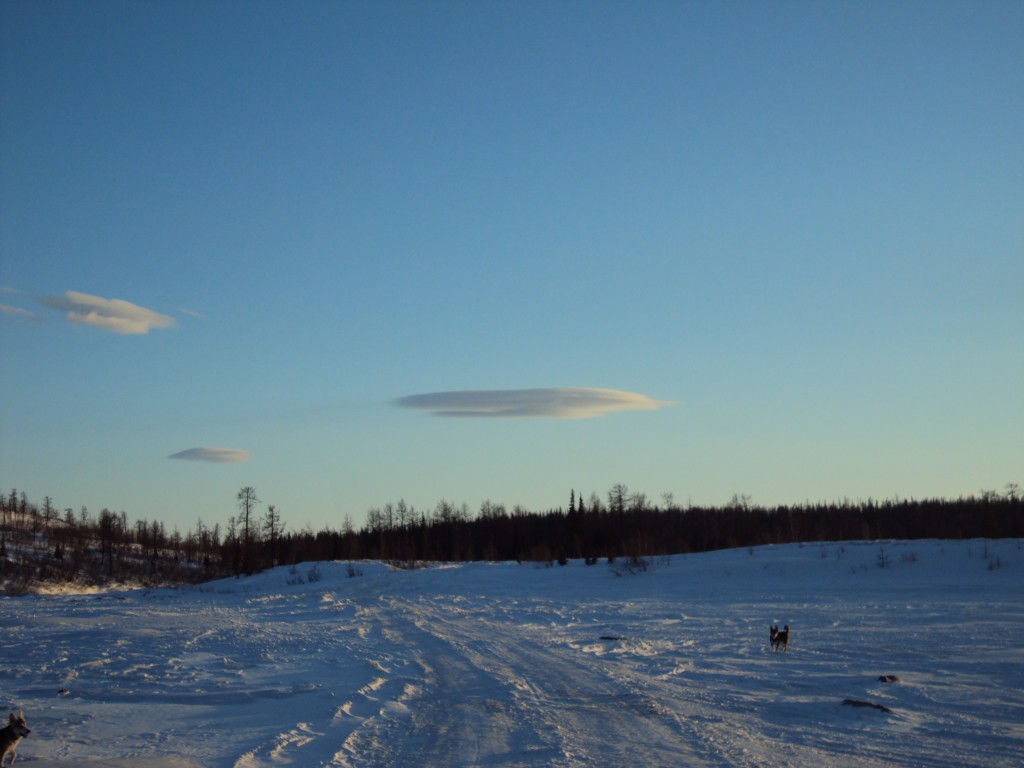 Это облака-линзы. Они в лесу проталины вытапливают. 8)