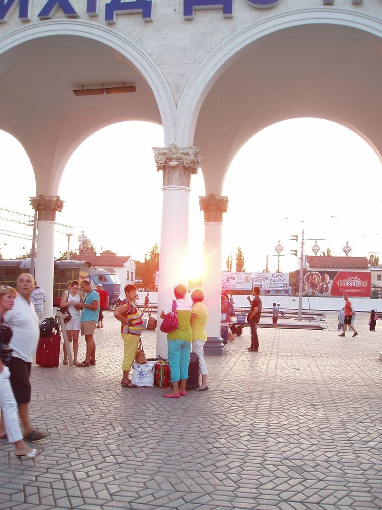 - Маша, что это такое?.. - Где?! - Да между колоннами!!! - Это поезд будущего! - Как красиво... - Я даже футболочку под цвет надела! - И я тоже... Третья: - А я - брюки! ![]() ![]()