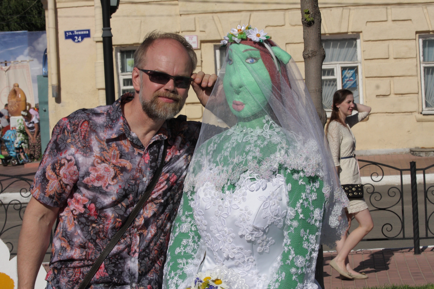 - Паслющай, дарагая, ты уже фата с цвыточиком примэрил?