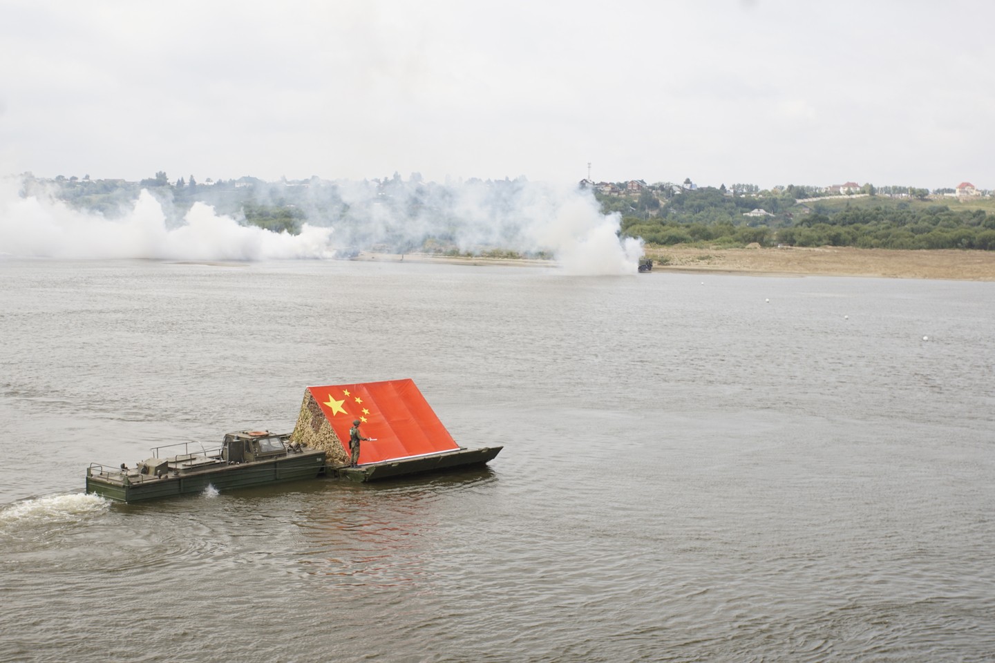 Да, китайцы и белорусы принимали участие. Китайцы около месяца готовились. Пришли вторыми после наших. Всю инженерную технику привезли с собой свою. Кстати, у них этот самый катер сел на мель возле самых трибун. Наверно наш катер оказался для них слишком сложным в управлении. Долго они его сталкивали обратно на глубину.
