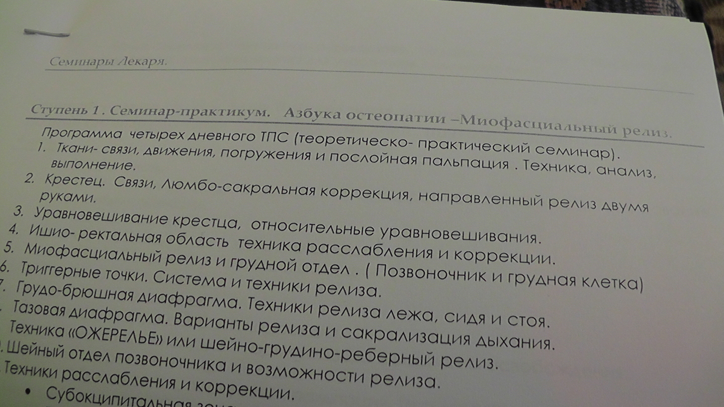 На базе медицинского центра "Семейный доктор" состоялся 4-х дневный семинар 4-5-6-7 марта 2013 года ведущих специалистов в области массажных технологий. Ведущие: Рябиков О. Е. Чередниченко С.А. Набабкин А.В. (Саошиант) | |