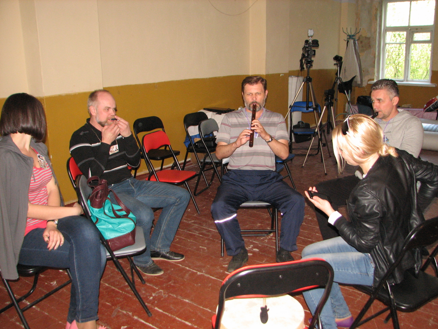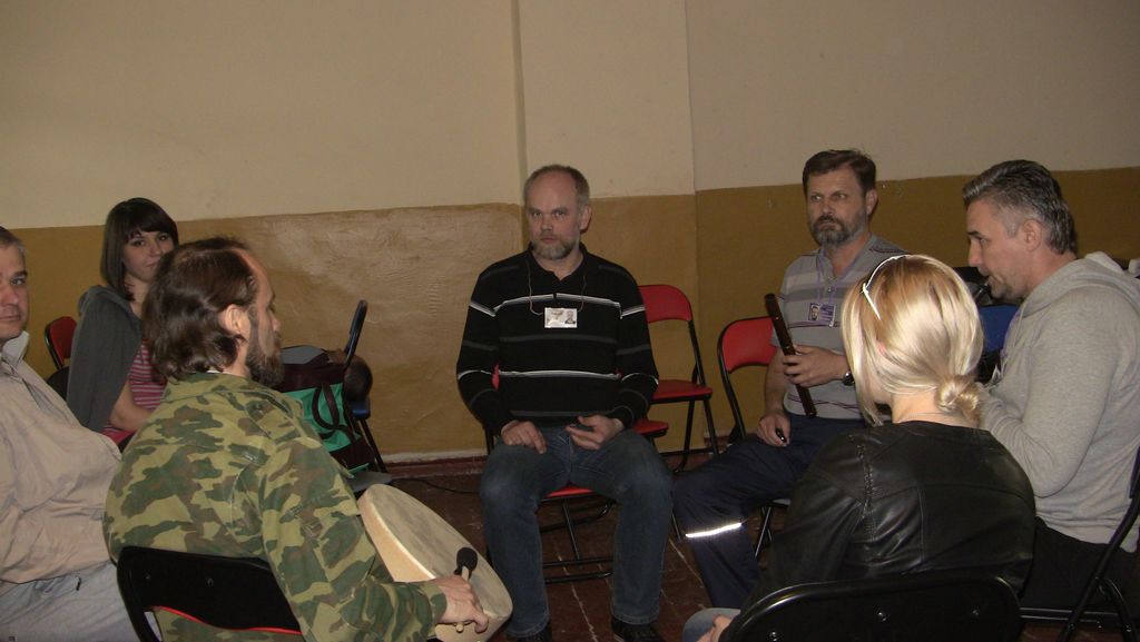 Однако зато нам удалось поиграть всем вместе :) Я всегда считал, что музыку надо не слушать, а играть. Что не должно быть такого, что один на сцене, а остальные в зале. Все должны участвовать в музыке. Поскольку пассивное восприятие музыки не может сравниться с активным участием в ней. А такие инструменты как бубен и варган они помогают интуитивно настраиваться на ритмическую волну без задействования разума.
